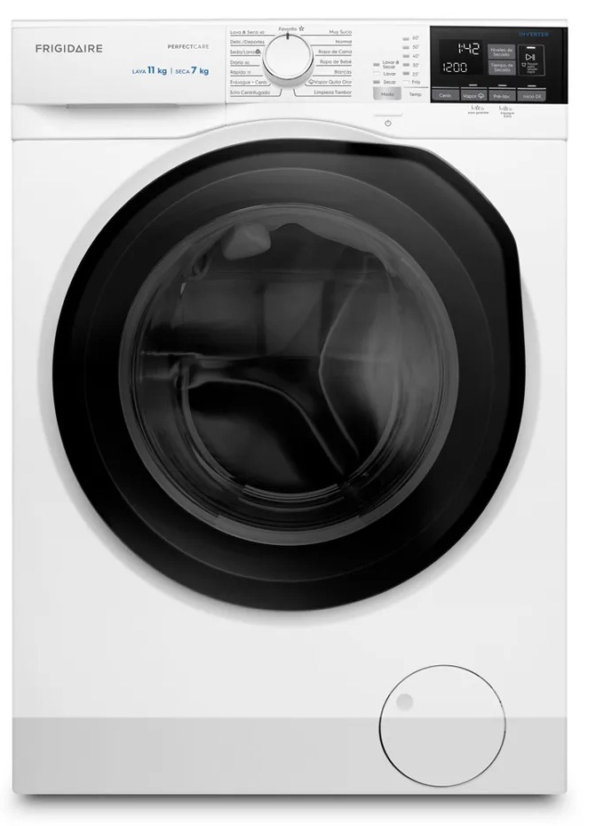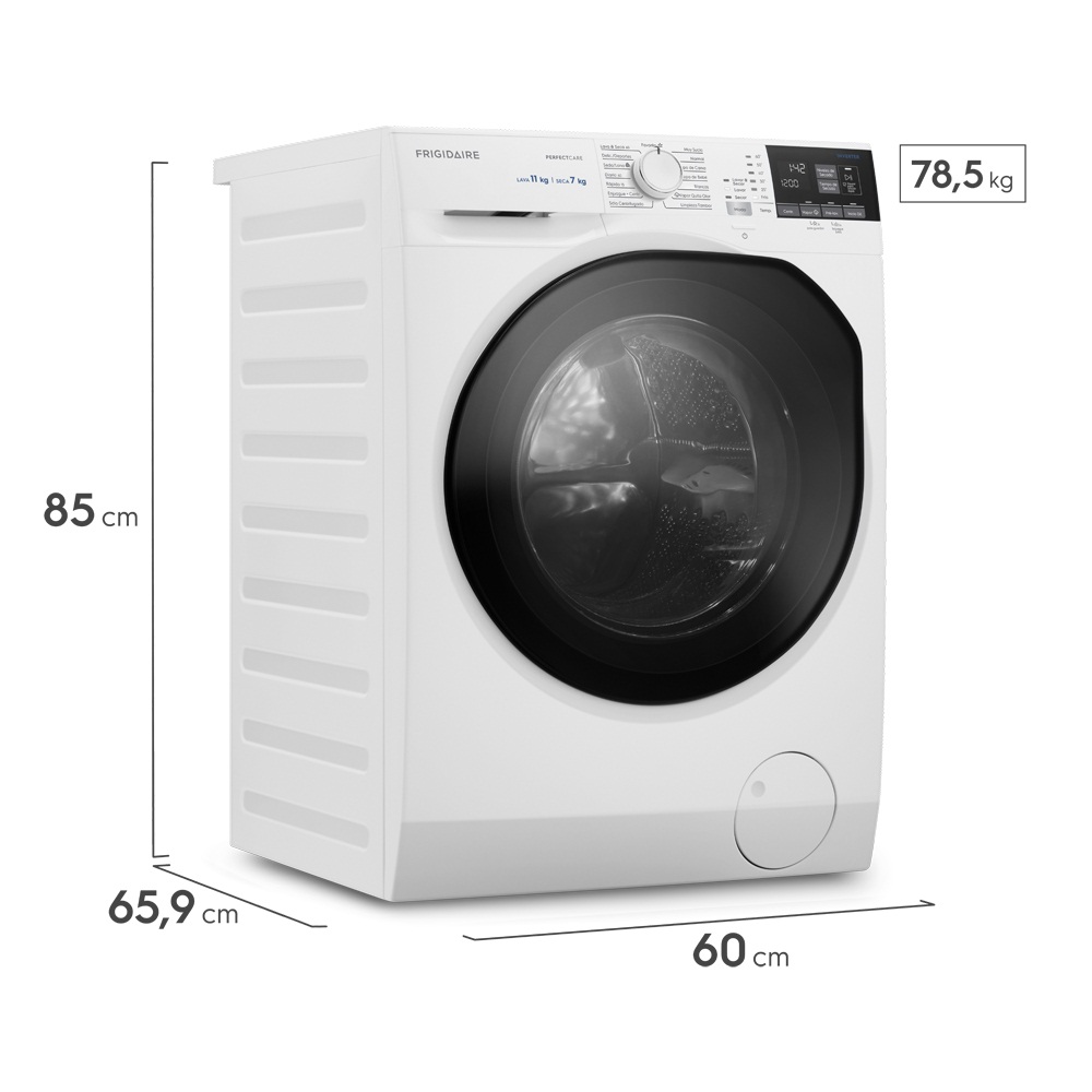 Lavadora con opción de secado 11 y 7kg – Centrifugado hasta 1400 RPM – Varios programas de lavado y de secado - Selector de temperatura para lavar y secar - Cuba y tambor de acero inoxidable - 1 año de garantía - Dimensions (cms) : A 60 ; F 65 ; Al 85